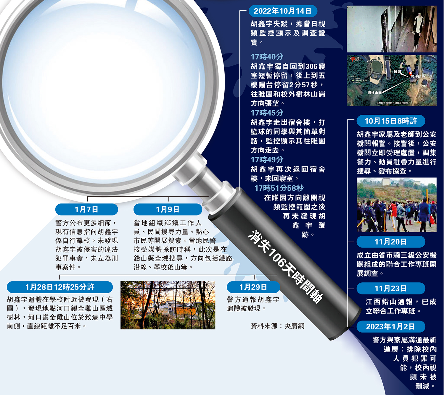 在睢園方向離開視頻監控範圍之後再未發現胡鑫宇蹤跡。