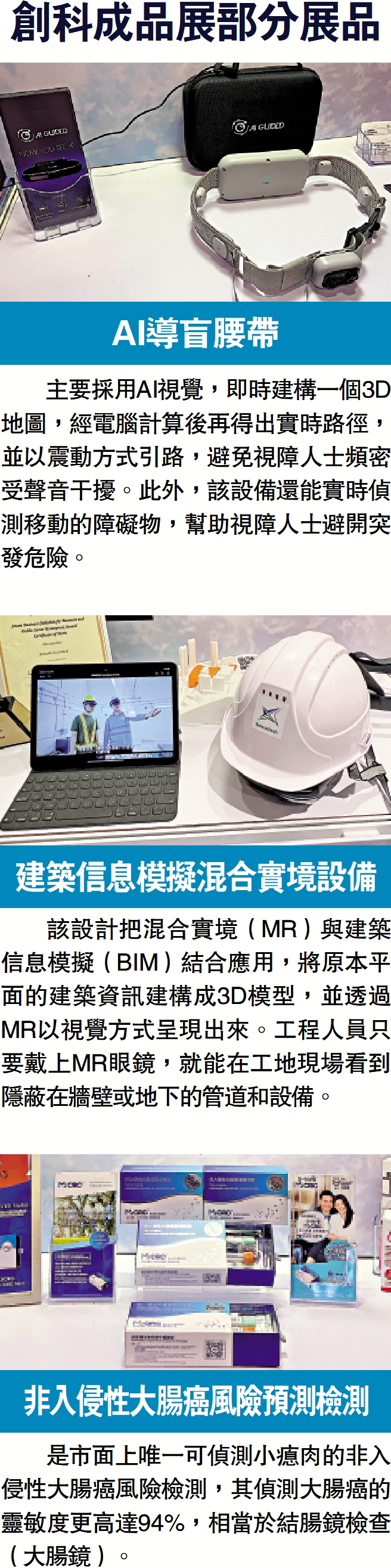 主要採用AI視覺,即時建構一個3D地圖,經電腦計算後再得出實時路徑,並以震動方式引路,避免視障人士頻密受聲音干擾。此外,該設備還能實時偵測移動的障礙物,幫助視障人士避開突發危險。