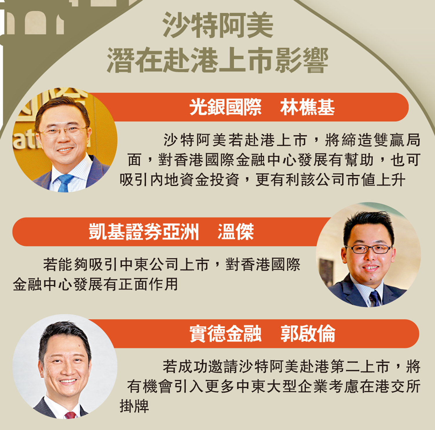 沙特阿美若赴港上市,將締造雙贏局面,對香港國際金融中心發展有幫助,也可吸引內地資金投資,更有利該公司市值上升