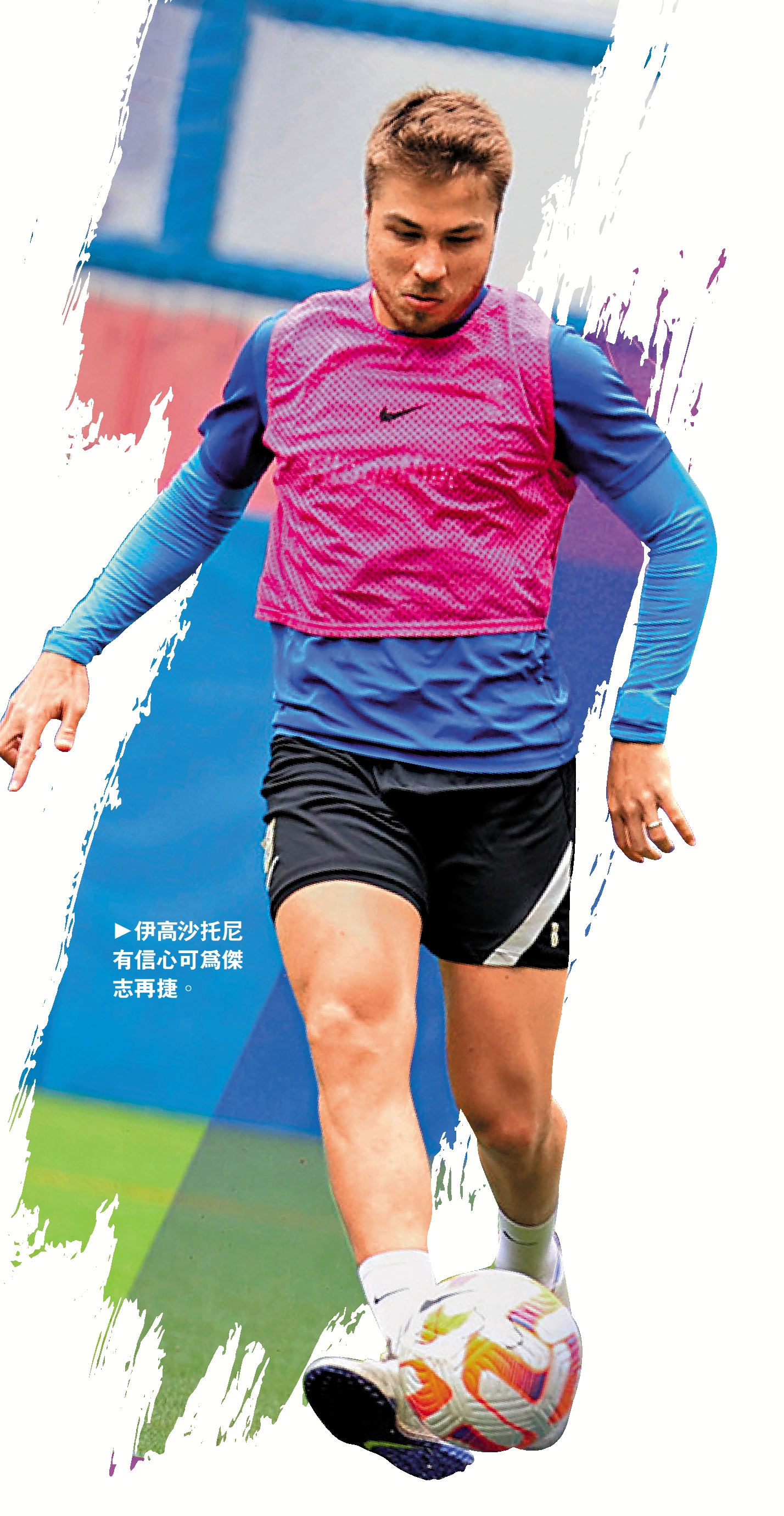 前香港足球先生伊高沙托尼坦言,加盟首兩仗僅後備上陣,最近兩仗獲正選上陣機會,個人狀態及跟隊友的默契越來越好,在場上越踢越舒適,入球和助攻將會陸續有來。金信煜加盟令傑志鋒線更見人才濟濟,伊高沙托尼強調勁旅內部競爭激烈實屬正常,反而可以提醒自己在訓練和比賽更要加把勁,目標是率隊勝出每一仗。
