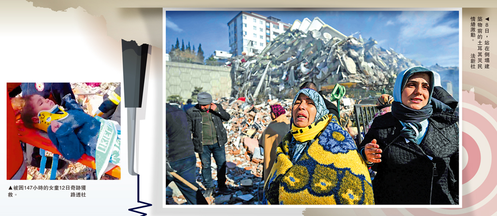 【大公報訊】綜合CNN、《衛報》、法新社報道:土耳其和敘利亞邊境地區發生的強震已過去一星期,隨着時間流逝,找到生還者的希望越來越渺茫,救援工作也逐步轉向災民安置、食水供應及防止病毒感染等。敘利亞有多達530萬人無家可歸,土耳其則有超過100萬人住在臨時收容所,有部分災民找不到住處,冒險返回危樓。而在受災嚴重的敘利亞西北部,叛軍控制下的地區民眾遲遲得不到救援物資,處境愈發艱難。