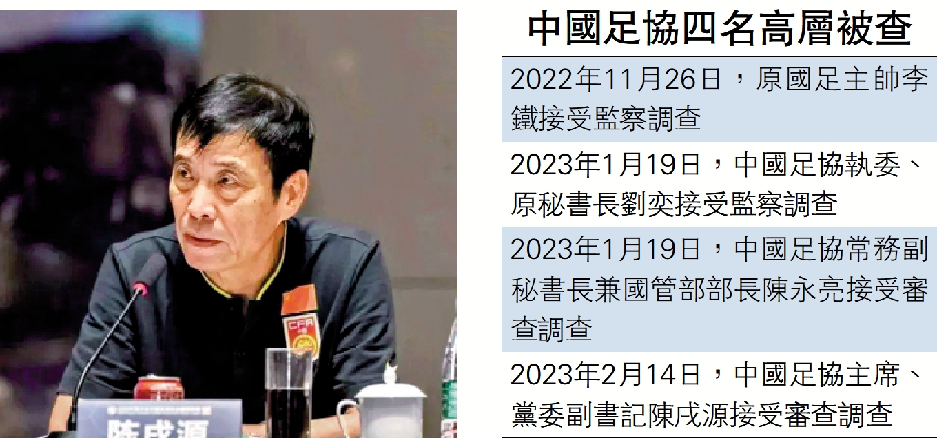 值得一提的是,中國足球領域近期已有多人被查,包括中國國家男子足球隊原主教練李鐵,中國足球協會第十一屆執委會成員、原秘書長劉奕,中國足球協會常務副秘書長兼國家隊管理部部長陳永亮等。