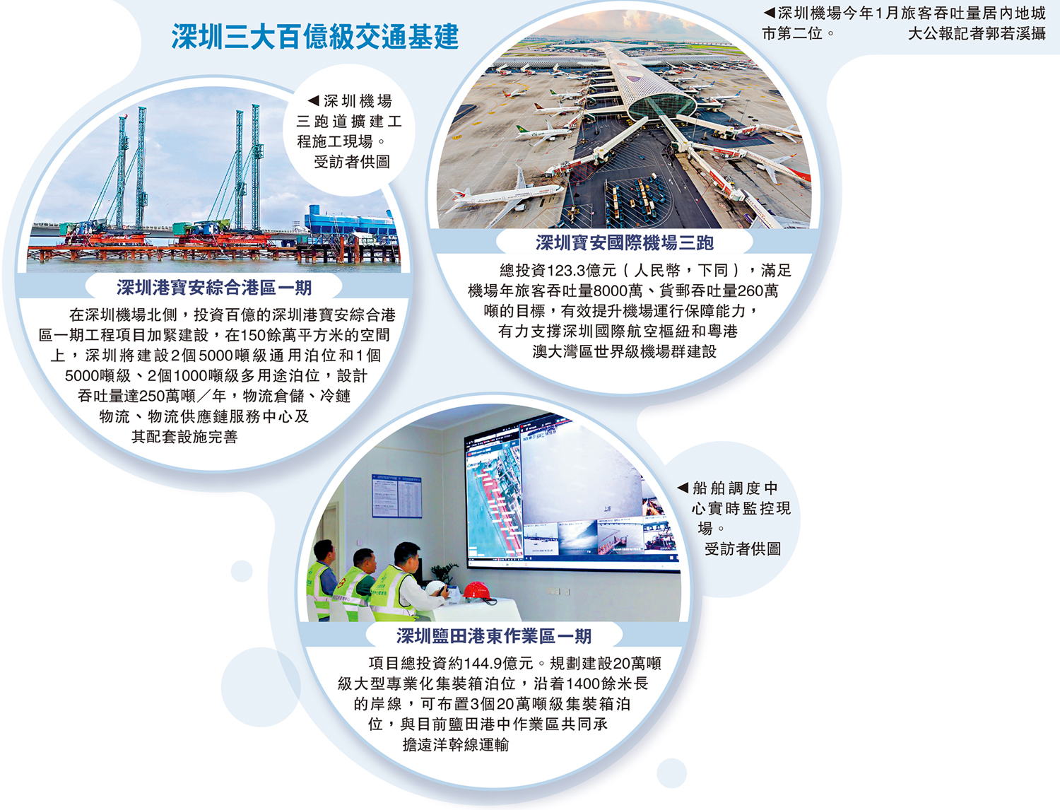 總投資123.3億元(人民幣,下同),滿足機場年旅客吞吐量8000萬、貨郵吞吐量260萬噸的目標,有效提升機場運行保障能力,有力支撐深圳國際航空樞紐和粵港澳大灣區世界級機場群建設