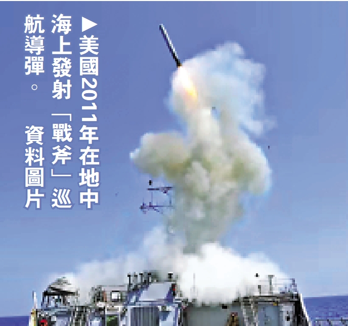 「戰斧」巡航導彈是美國主力高精準誘導型巡航導彈,可低空飛行,射程約1600公里。「戰斧」曾被美方用於1991年的海灣戰爭以及2003年的伊拉克戰爭等。