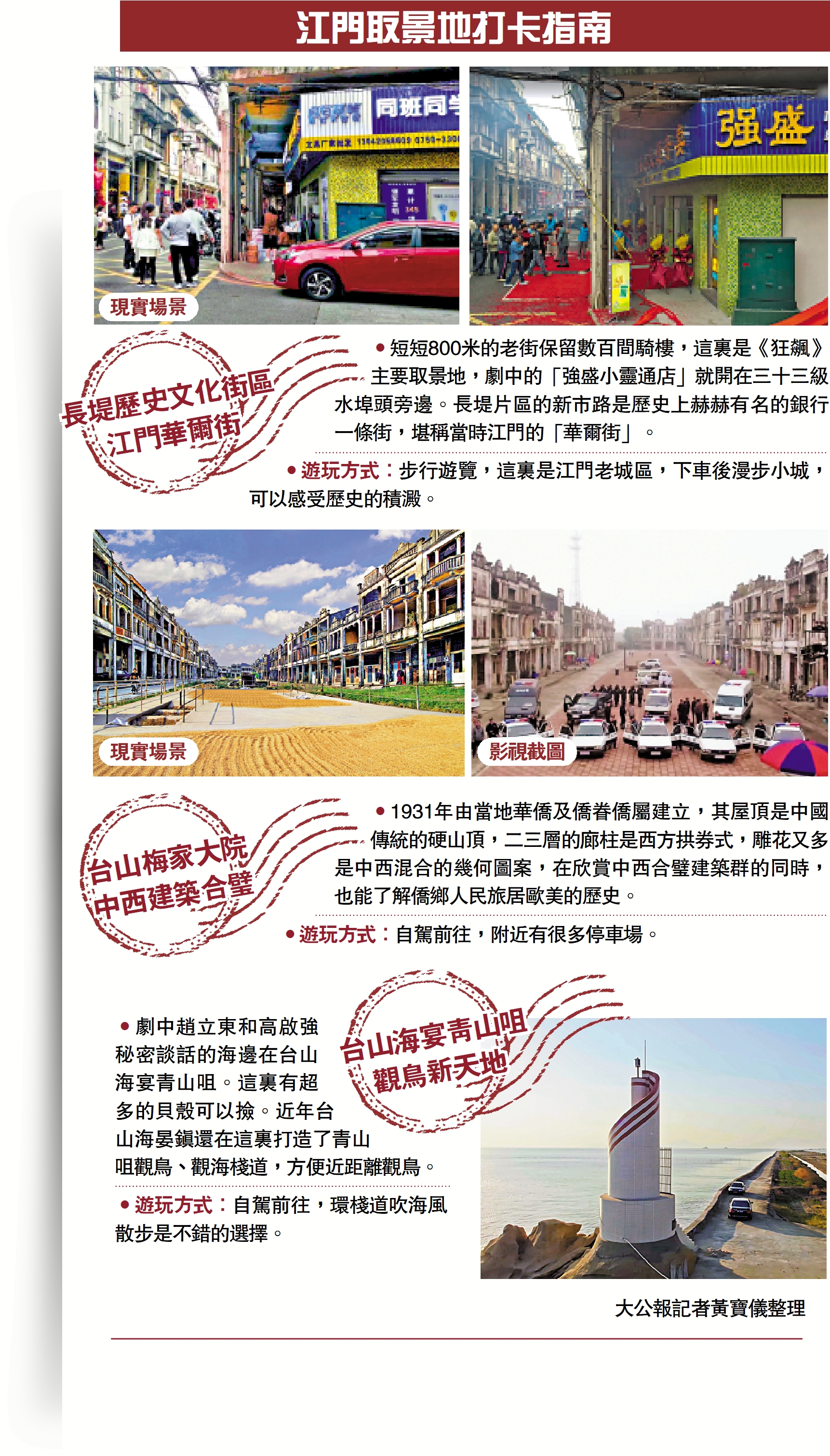 •短短800米的老街保留數百間騎樓,這裏是《狂飆》主要取景地,劇中的「強盛小靈通店」就開在三十三級水埠頭旁邊。長堤片區的新市路是歷史上赫赫有名的銀行一條街,堪稱當時江門的「華爾街」。