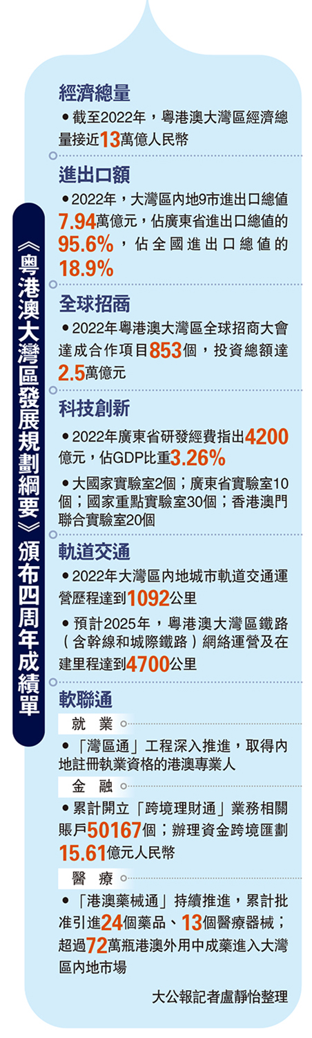 •「港澳藥械通」持續推進,累計批准引進24個藥品、13個醫療器械;超過72萬瓶港澳外用中成藥進入大灣區內地市場