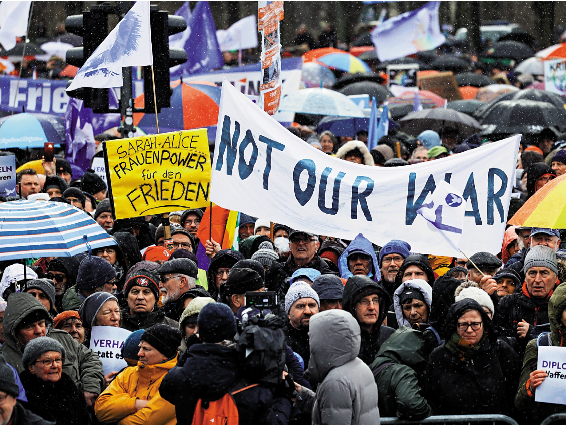 【大公報訊】綜合《衛報》、美聯社、《華爾街日報》報道:俄烏衝突持續一年,美歐不顧國內通脹壓力,持續向烏克蘭輸送武器,引起越來越多民眾不滿。25日,德國、英國、瑞士等國均爆發示威,要求停止對烏軍援、盡快結束戰爭。德國首都柏林聚集了上萬名示威者,他們手中的橫幅上寫着:「今天送頭盔,明天送坦克,後天就輪到你的兒子上戰場!」俄總統普京26日表示,北約已通過對烏軍援直接參與了俄烏衝突。