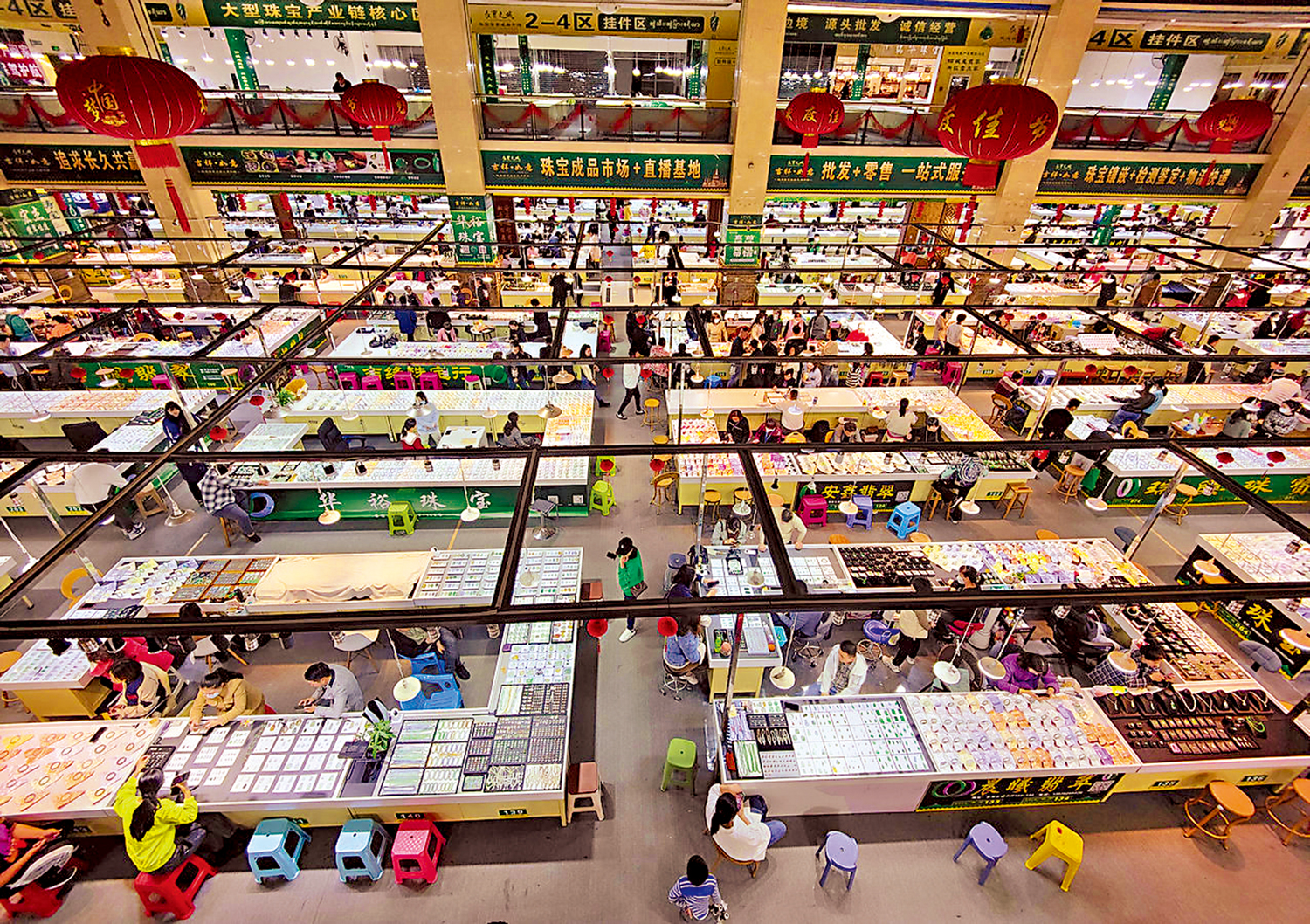 夜幕降臨,分布於瑞麗不同區域的珠寶玉石賣場燈火輝煌,一個個直播間裏、一條條米櫃前人頭攢動,此起彼伏的吆喝、拍桌成交的聲音、主播的激情點亮了瑞麗的夜晚。真正令瑞麗珠寶行業看到希望的,是春節長假。