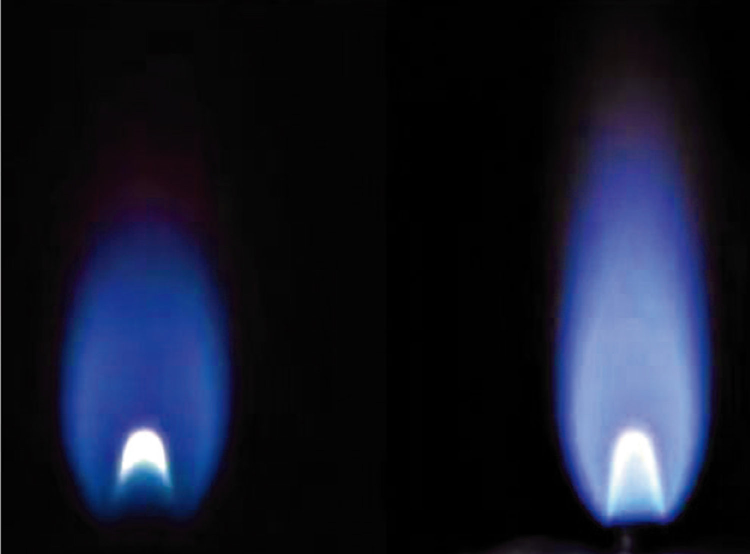 此次點火實驗採用甲烷作為燃料,先後兩次點火共持續約30秒,高速相機下傳的實驗畫面清晰展現了甲烷預混火焰(內圓錐狀火焰)受擴散火焰包圍的形貌。