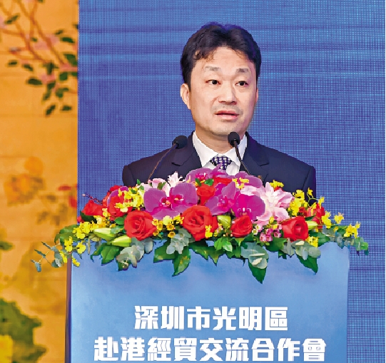 他強調,光明有充足的產業空間,今年將會通過「工業上樓」釋放連片產用業地100公頃,籌建高標準產業用房460萬平方米。同時,光明有着優質的生活空間,156平方公里的轄區裏面,有279個公園,200多公里綠道,另外深圳國際美術館、科技館、文化藝術中心,國際青少年足球基地等文體設施都一一落地。目前在光明發展的港資企業有897間,光明會努力提供營造更加優質的環境,支持香港同海內外企業家到光明交流合作。