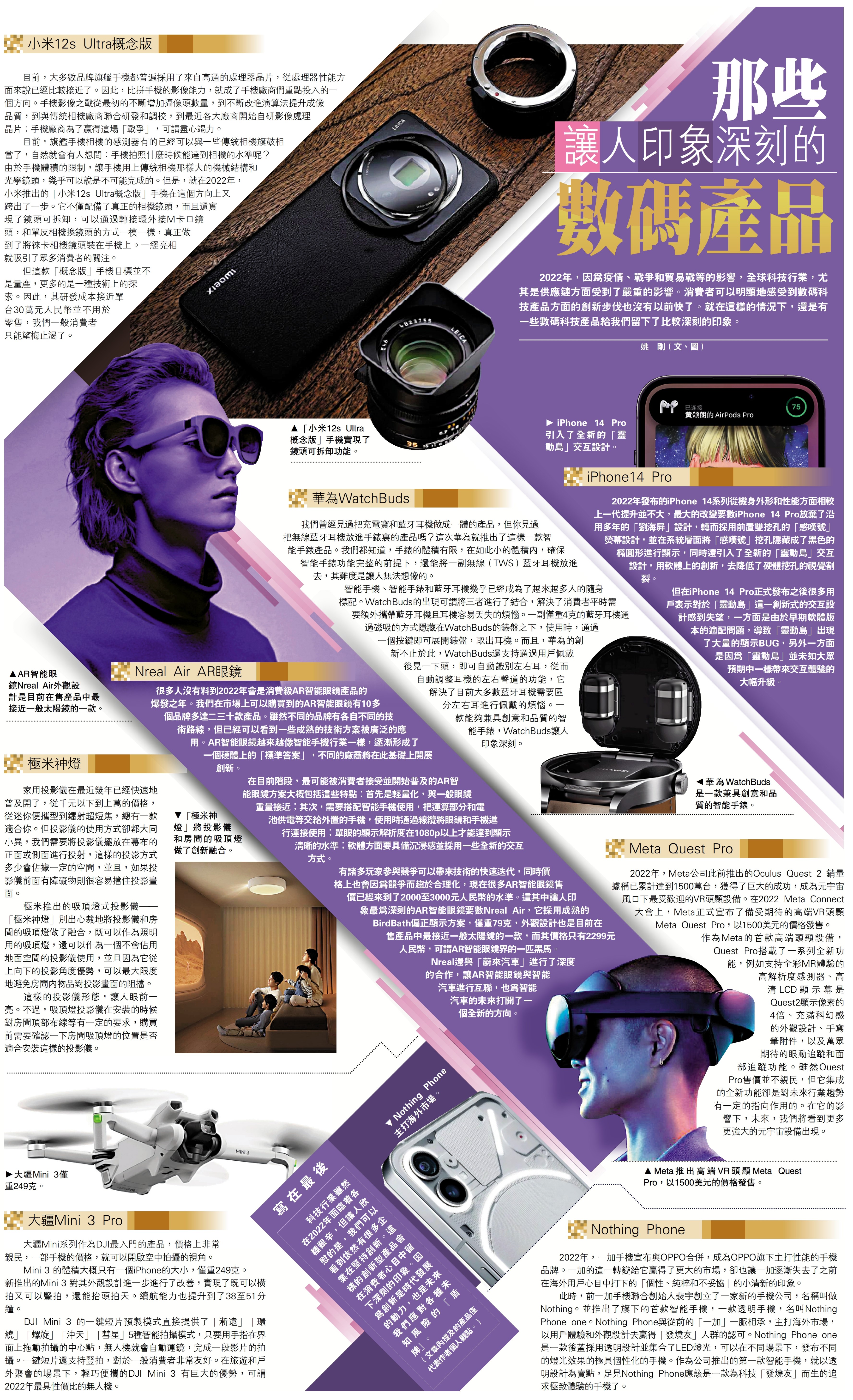 2022年,因為疫情、戰爭和貿易戰等的影響,全球科技行業,尤其是供應鏈方面受到了嚴重的影響。消費者可以明顯地感受到數碼科技產品方面的創新步伐也沒有以前快了。就在這樣的情況下,還是有一些數碼科技產品給我們留下了比較深刻的印象。\姚 剛(文、圖)