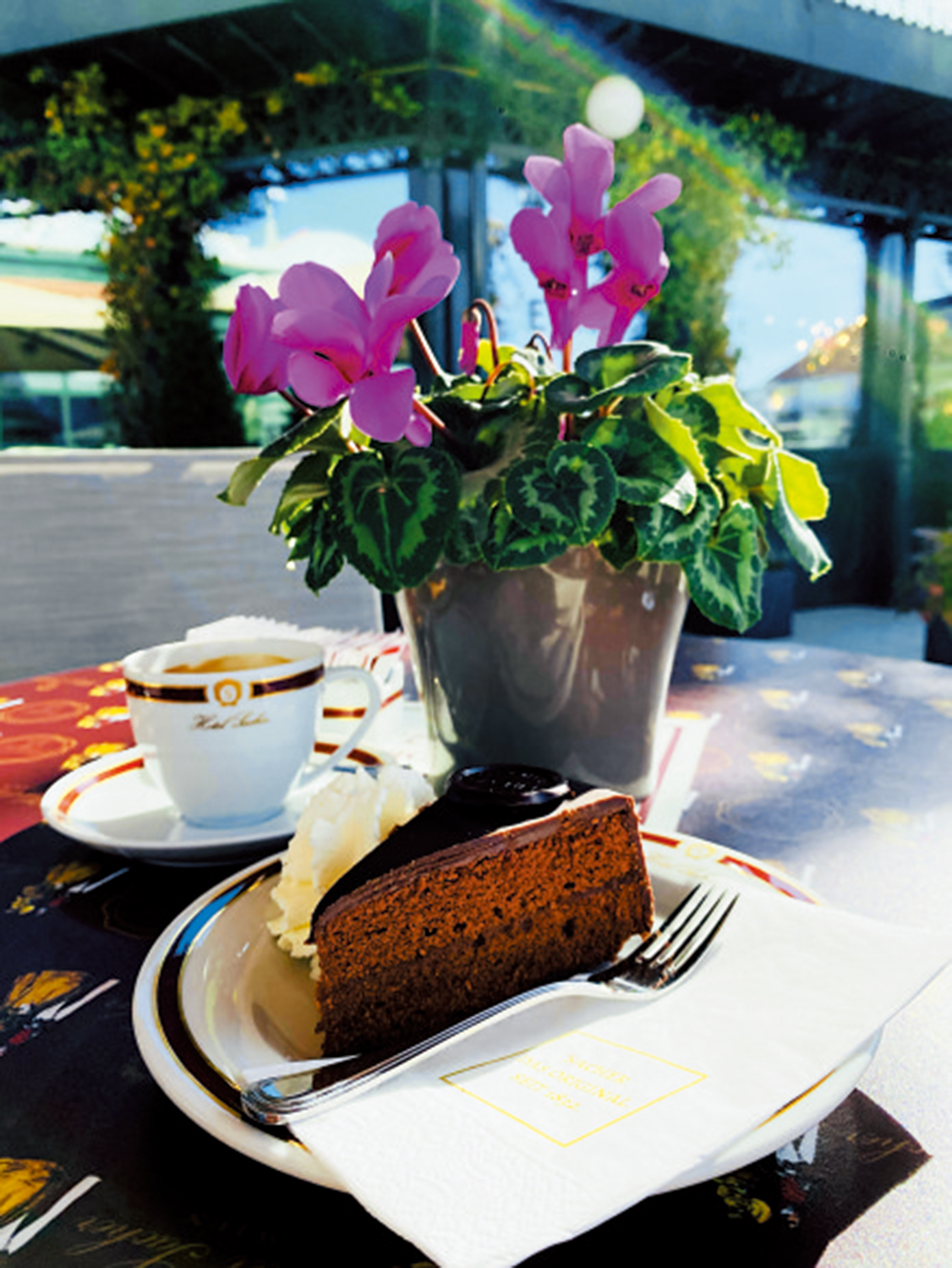 闊別三年,這次回到維也納在逛Outlet的時候驚喜發現,薩赫咖啡廳竟然在Parndorf開了分店,且空位充足,這下連購物的熱情都被它偷走了。在陽光下享受一塊夾雜着酸甜杏子果醬的濃郁巧克力蛋糕再搭配輕盈的淡甜奶油泡沫,同時氤氳在面前清新空氣中的咖啡香撲鼻而來,感官的多重享受產生的多巴胺濃度早已勝過了買東西帶來的單一興奮感。