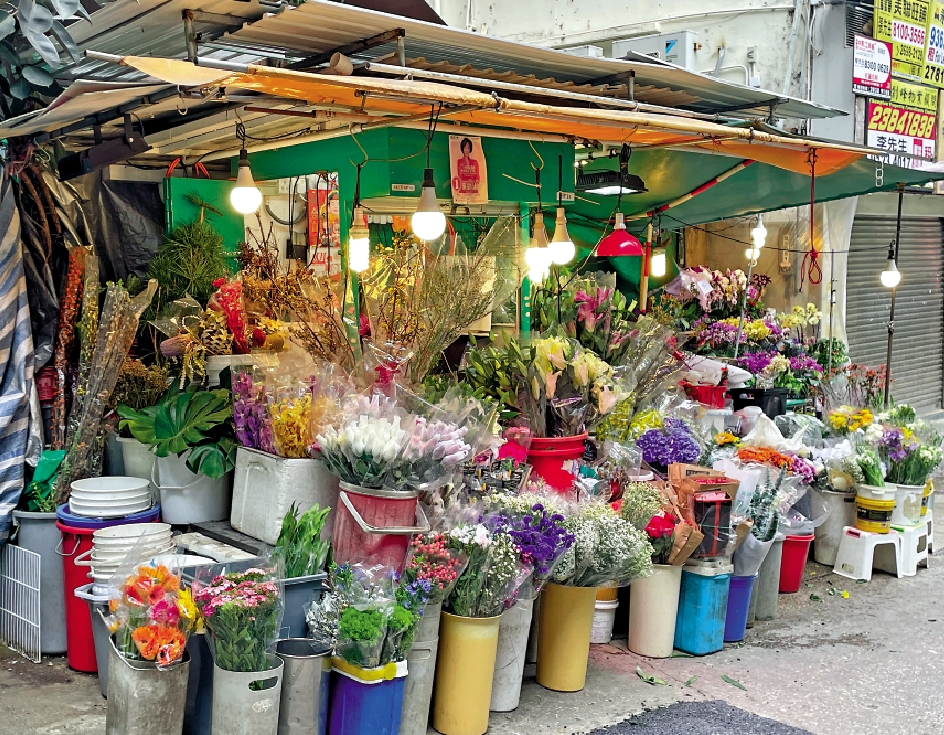 中環結志街2號蘭芳園旁邊,也有花攤將成束鮮花擺放在門口,供人挑選,吸引不少途人駐足買花。在行人腳步匆匆的的中環,這裏可以說是轉角遇到的一點小浪漫。