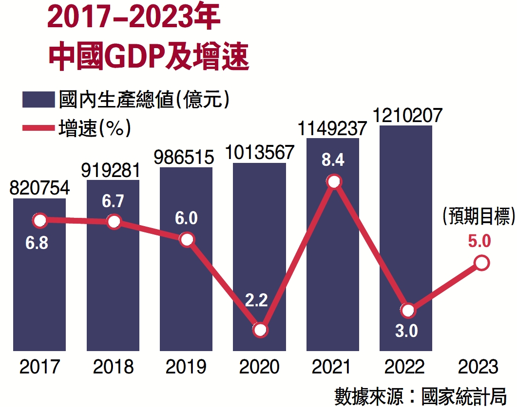 圖:2017-2023年中國GDP及增速