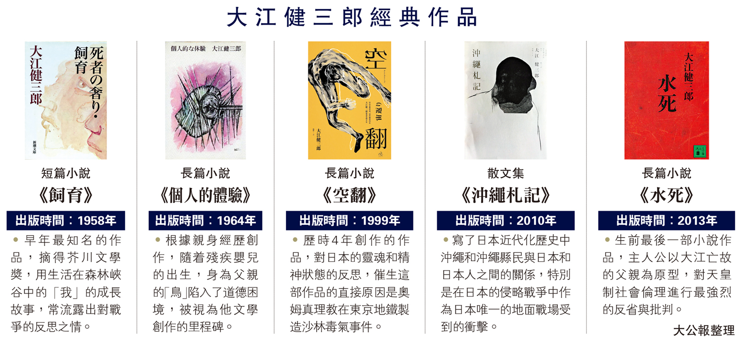 •早年最知名的作品,摘得芥川文學獎,用生活在森林峽谷中的「我」的成長故事,常流露出對戰爭的反思之情。