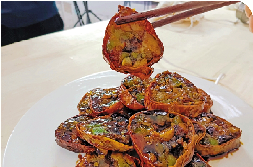 糖卷果被譽為「老北京小吃十三絕」之一,是一種源自回族的清真小吃,但由於其通常以山藥、大棗為主料,配以青梅、桃仁、瓜子仁等輔料,用料講究,也被看作一種滋補的藥膳。