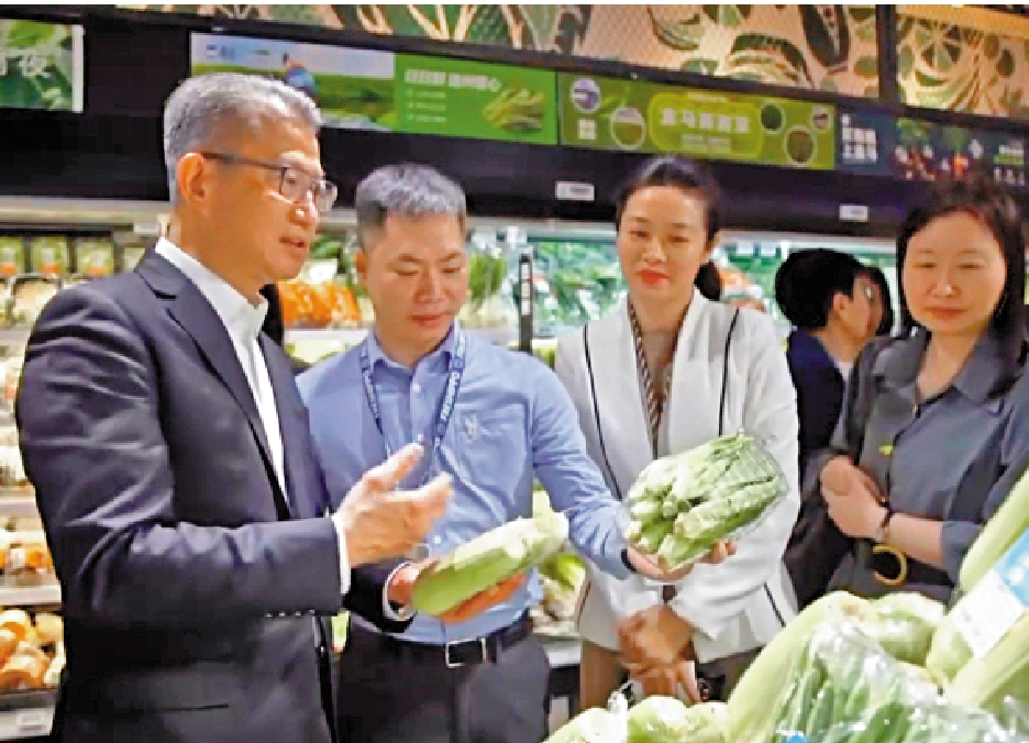 【大公報訊】記者賴振雄報道:財政司司長陳茂波周三(3月15日)到訪廣州市,分別與廣東省和廣州市領導會面,探討深化兩地合作,共同加速推進高質量發展和粵港澳大灣區的經濟融合,其間走訪內地冷鏈生鮮食品供應商,了解線上線下與現代物流融合的購物體驗。