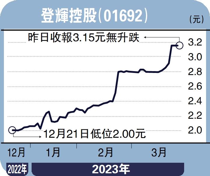 股價表現方面,登輝由上市至今股價隨着業績表現持續向好,屬於一間穩定的實力工業股,派息比率高於八成,現價市盈率不足10倍、息率高近10厘,估計後市仍可平穩向好。