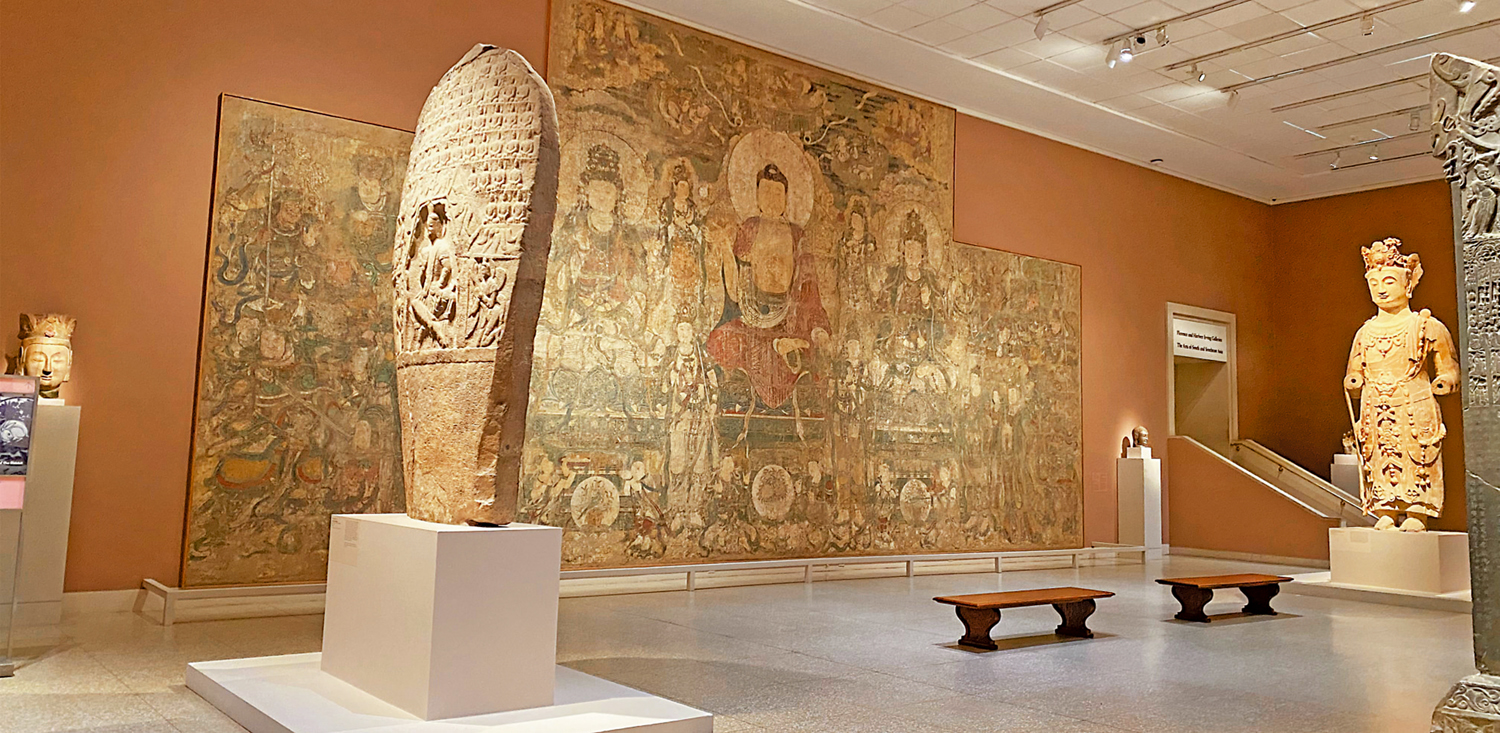 凡到過紐約大都會博物館亞洲廳的觀眾無不被入口處那巨幅藥師佛壁畫震撼。它幾乎有大半個籃球場面積,橫亙在眼前,不獨尺幅闊大而且藝術性極高。其佛像莊嚴高古不輸吳道子,顏色斑駁蒼秀,法相儼然,在海外,這是一生一遇的奇跡。