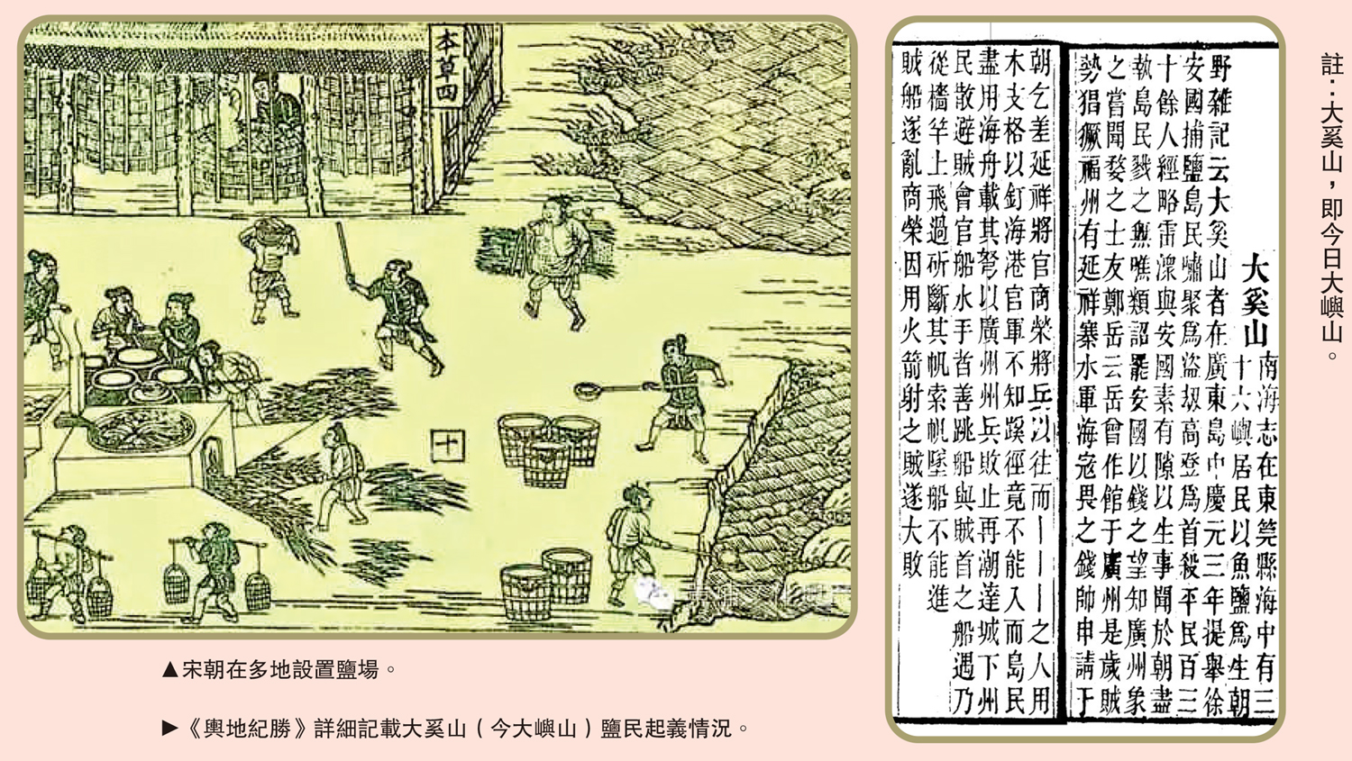 北宋末年,金兵南侵,宋室南渡,朝廷對地方之管理轉趨薄弱,造成地方私鹽大盛。明盧祥《東莞縣志》載,「在縣南大海中」之大奚山,其居民「不事農桑,不隸征徭,以魚鹽為生。」南宋紹興年間(1131-1162),宋廷招降大奚山(今大嶼山)朱祐等人,選其少壯者編入水軍,「立為外寨,差水軍使臣一員,彈壓官(一員)」,並放寬當地漁鹽之禁,又升海南柵為海南場。