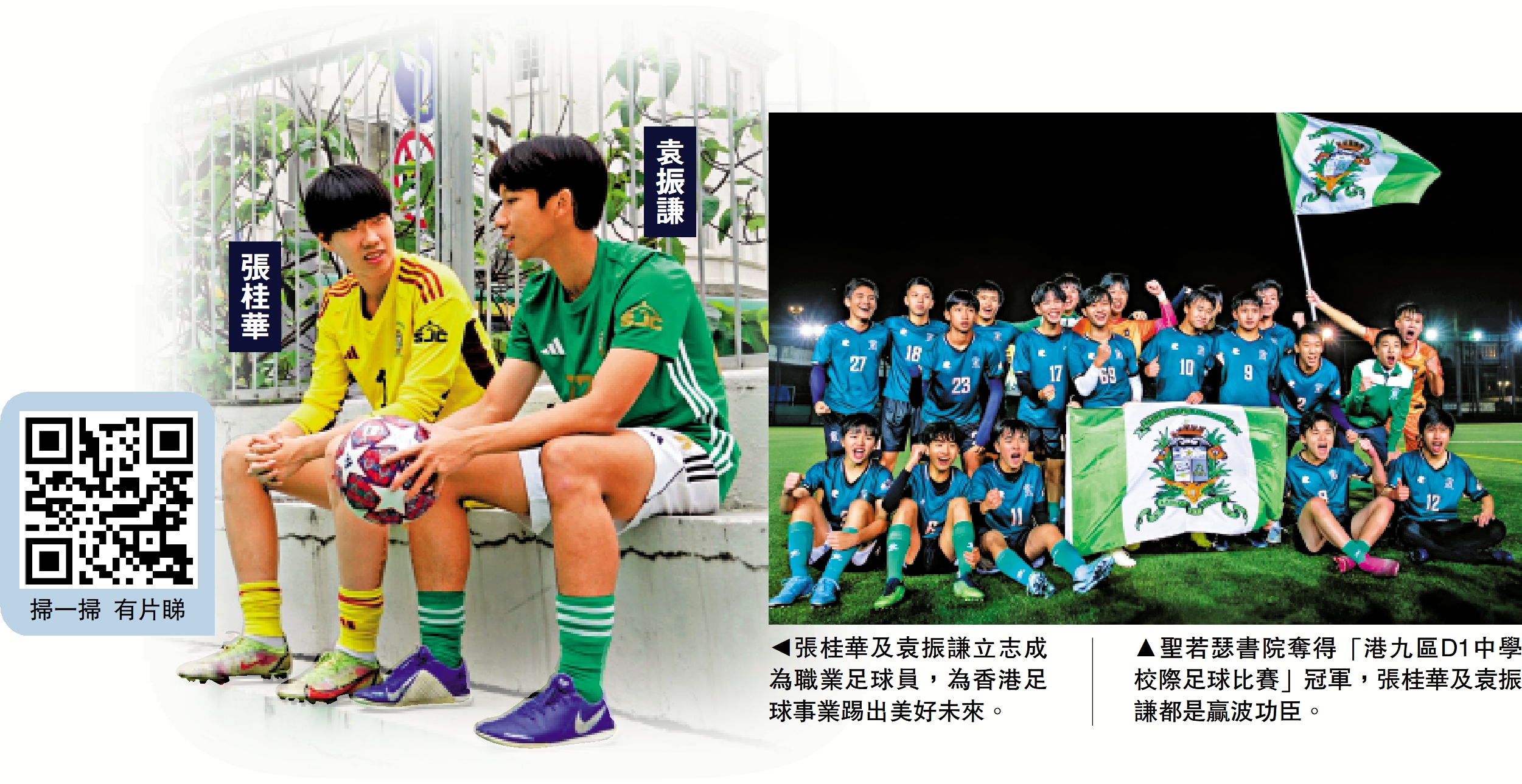 兩名足球小將自幼接觸足球,加上滿腔熱情與勤於練習,都戰績彪炳。張桂華贏得U15青年聯賽足總盃冠軍、香港超級青年聯賽─U18 聯賽盃冠軍,並在2015、2017及2019年的NIKE香港五人足球賽分別贏得季、亞、殿軍;袁振謙則早在7歲已奪得NIKE香港五人足球賽2015的「神射手」殊榮。一守一射猛將屢創佳績,聖若瑟書院於2022年兩次力挫拔萃男書院,分別於3月及12月奪得「2022-2023年度全港學界精英足球比賽」及「港九區D1中學校際足球比賽」A Grade的雙料冠軍。兩場比賽均在關鍵時刻互射十二碼,張桂華在死亡階段救出對手射門,助校隊17年後再奪冠,並贏得「最佳防守球員」稱號。贏波功臣袁振謙,憑其出色表現在學界被評為「最有價值球員」。
