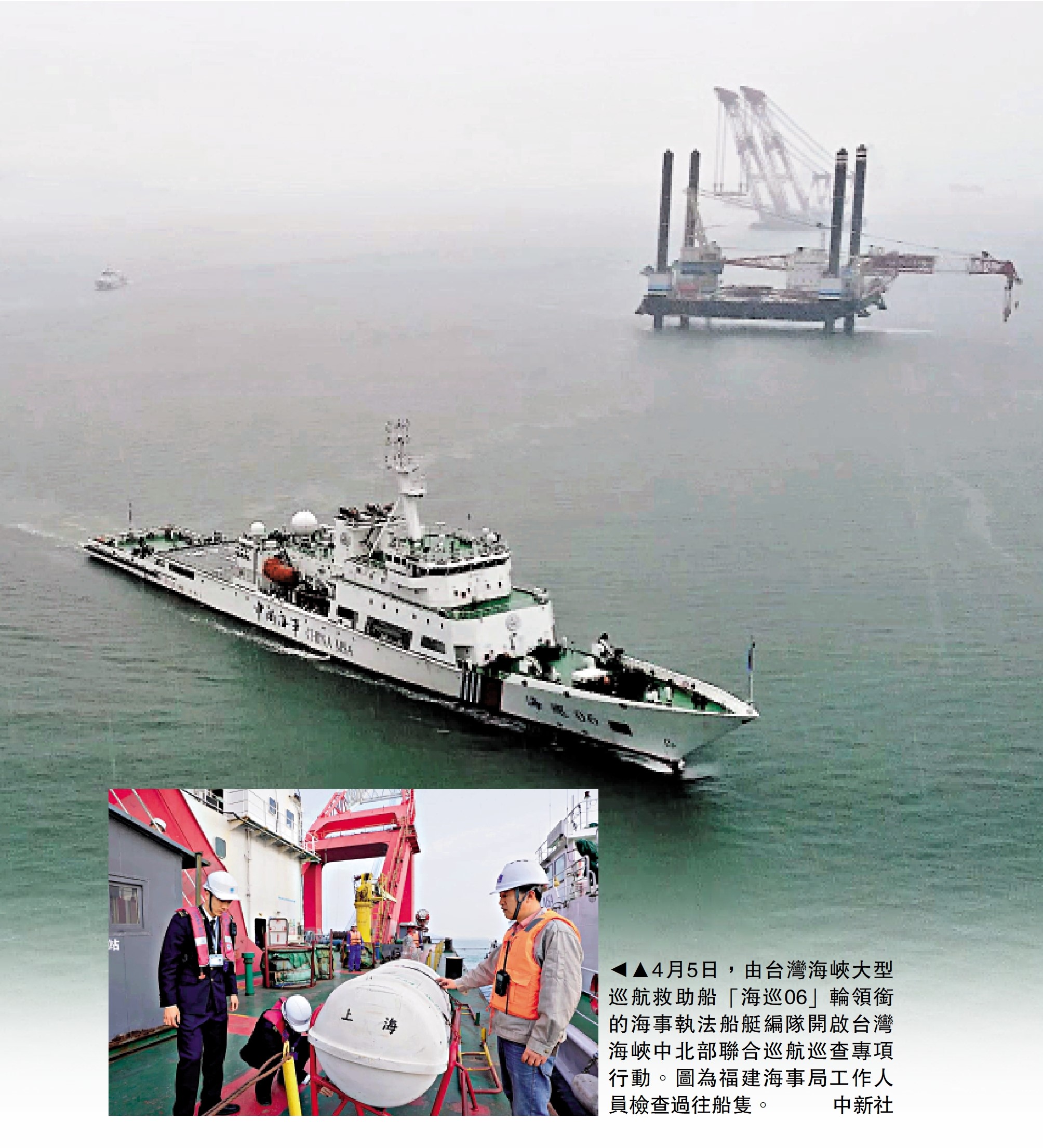 福建海事局4月5日發布消息,由台灣海峽大型巡航救助船「海巡06」輪領銜的海事執法船艇編隊開啟台灣海峽中北部聯合巡航巡查專項行動。在美國眾議院議長麥卡錫在美國洛杉磯會見以「過境美國」為名的中國台灣地區領導人蔡英文之際,中國大陸此舉引來關注。兩岸學者指出,美國挑戰中國底線,中國以此回應強化一個中國原則,並展現台灣問題是中國內政。\大公報記者 趙一存、蘇榕蓉報道