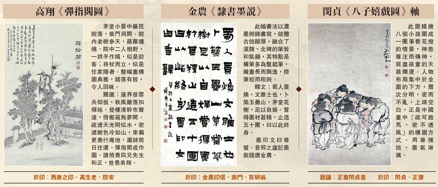 目前存世的「揚州八怪」作品數量近2000幅,而正在旅順博物館展出的「見怪不怪──揚州八怪書畫精品展」,則雲集了66件「揚州八怪」書畫精品。策展人、旅順博物館副研究館員閆建科表示,展覽中的高翔《彈指閣圖》、金農《隸書墨說》、閔貞《八子嬉戲圖》軸等都是罕見的藝術佳作,展期至4月11日。