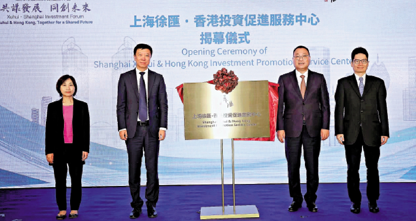 滬港兩地政府代表、商會代表、企業家和專業人士逾150人,昨日共同見證徐匯區與中國銀行(香港)、香港總商會、香港中華總商會、香港中華廠商聯合會、香港中國商會等機構簽合作備忘錄,及上海徐匯·香港投資促進服務中心成立揭牌。