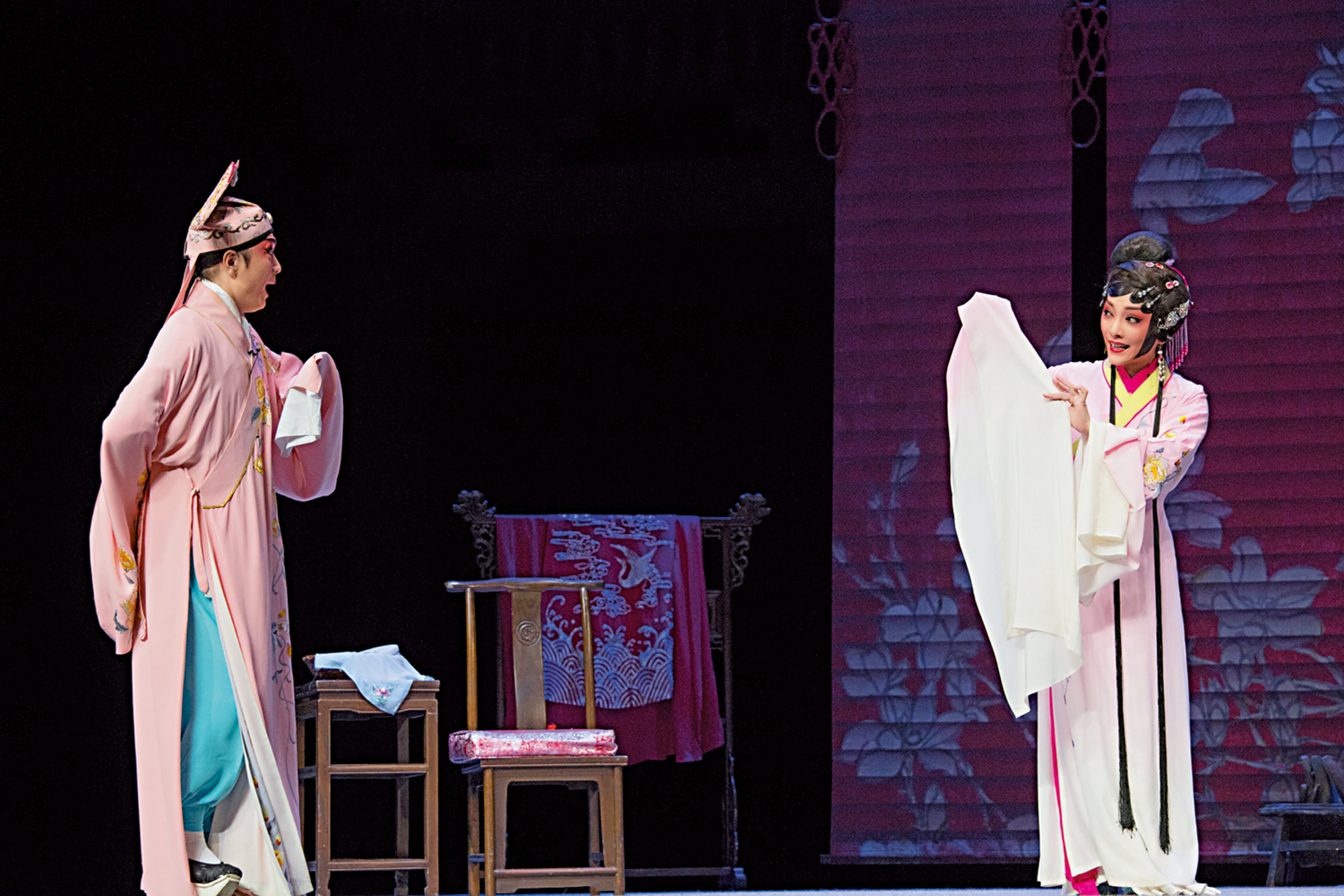 「當初做《李亞仙》這個戲的時候,我們就在考慮,如何能做到古戲新傳。」沈鐵梅認為當下觀眾喜歡劇情發展節奏快,搭配視聽效果,再加上劇種的特點,「我們這個戲在改編後的特點是聚焦,將故事集中在李亞仙和鄭元和的主線。另外在結尾上我們做正悲劇處理,在編劇時考慮到我聲腔藝術特點,用悲劇才會產生更大的震撼力和張力。」