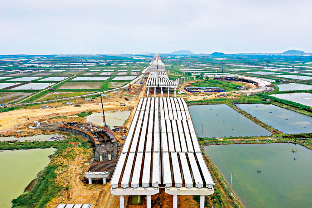 黃茅海跨海通道則橫跨珠江口崖門入海口,目前兩座主橋的5座主塔已全部順利封頂,擬2024年底建成通車。該通道將與港珠澳大橋、西部沿海高速共同構成大灣區最南側的一條東西橫向高速運輸通道,使香港到江門的車程只需1個小時,推動大灣區主要城市間1小時通達。