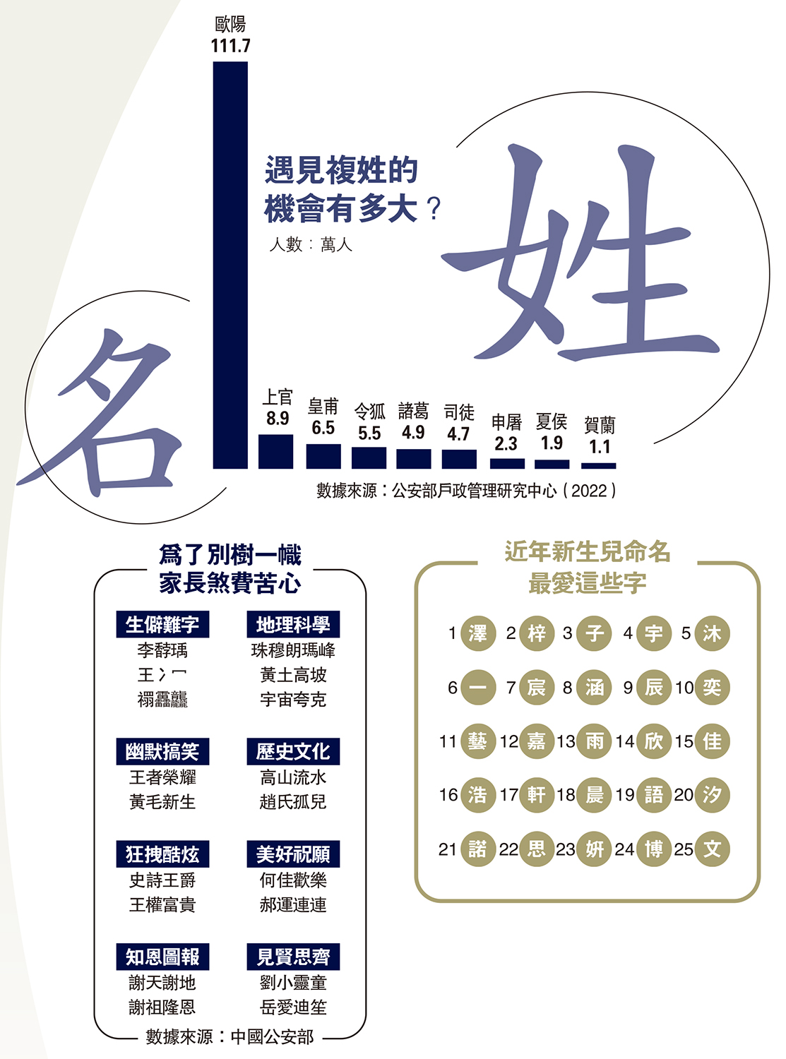 圖:遇見複姓的機會有多大?