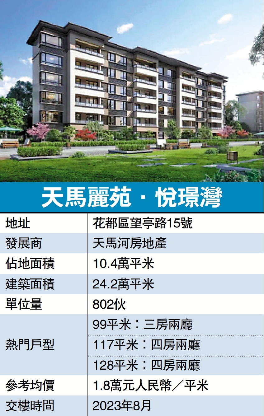 項目佔地10.4萬平米,建築面積24.2萬平米,由低層住宅及別墅組成,提供802個單位,目前在售三種戶型。其中,99平米三房兩廳單位,方正實用,客飯廳位處中央位置,兩旁各連接露台,通爽舒適;廚房U形設計,擺位靈活,與飯廳一體化;三間睡房分置兩旁,主人套房設270度窗台,景觀開揚。