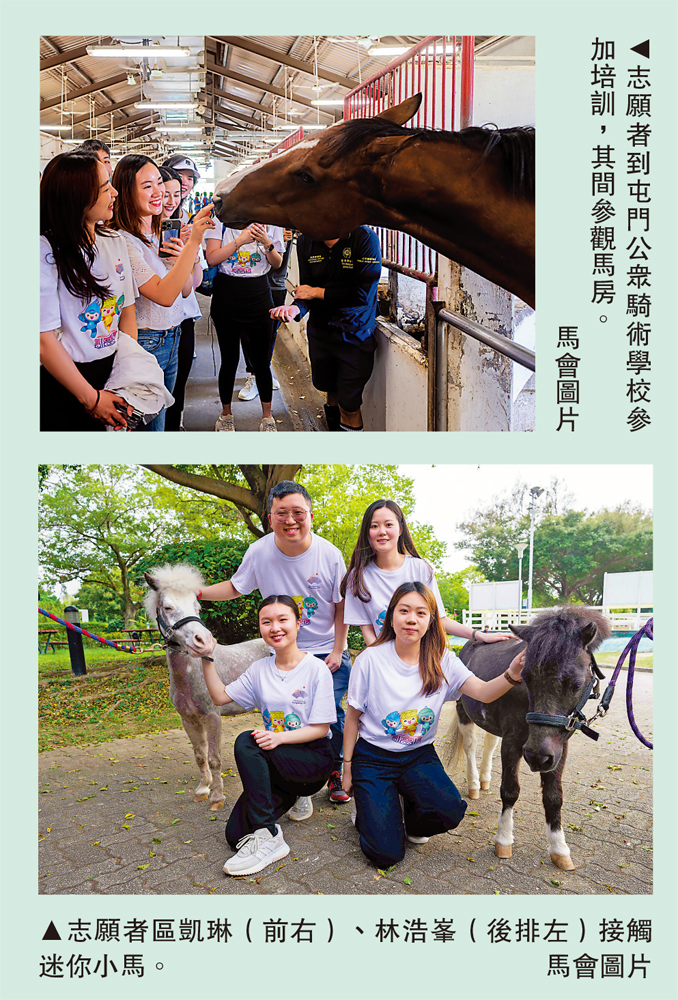馬會於4月29日,在其轄下的屯門公眾騎術學校,為香港預錄用賽會志願者舉辦培訓。馬會安排約60名來自香港島婦女聯會及香港青年協會的志願者參加。在馬會的馬術專業人員帶領下,接待了預錄用的賽會志願者參觀馬房,加深對馬匹習性的認識,志願者更可接觸迷你小馬,並了解馬術運動及馬會對杭州亞運馬術項目的技術支援。