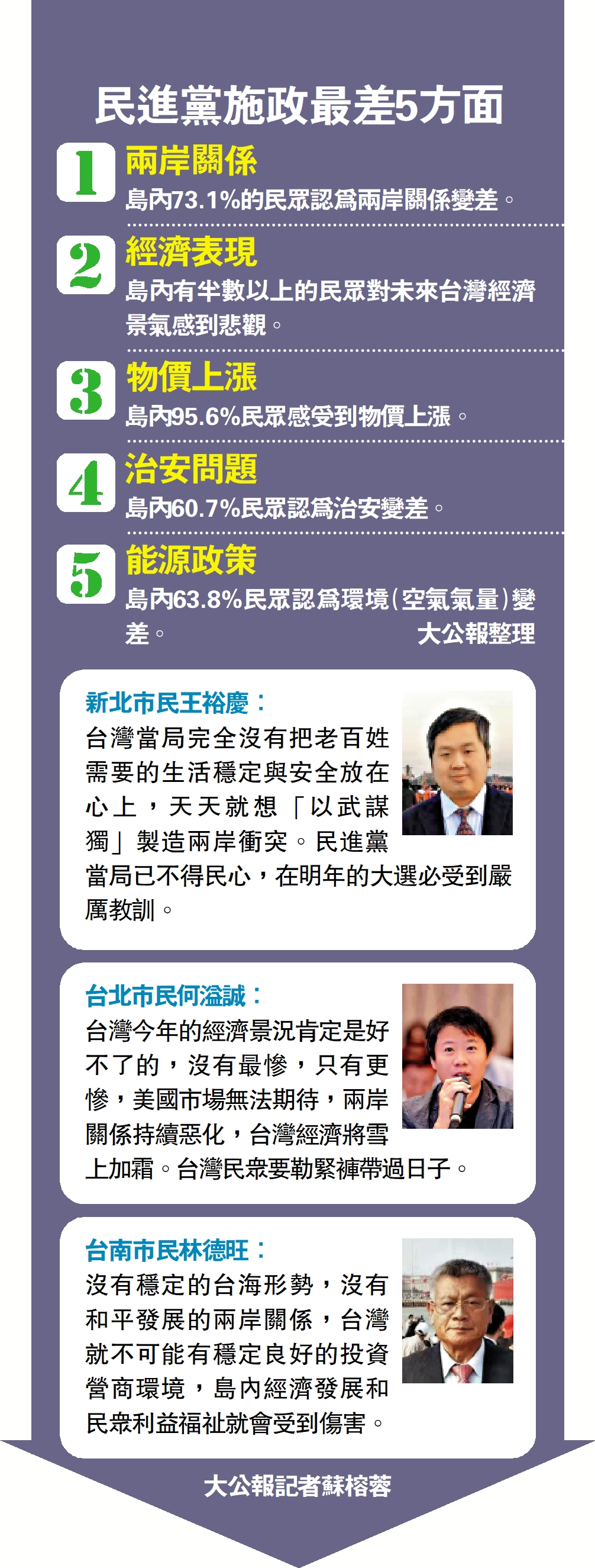 台灣當局完全沒有把老百姓需要的生活穩定與安全放在心上,天天就想「以武謀獨」製造兩岸衝突。民進黨當局已不得民心,在明年的大選必受到嚴厲教訓。