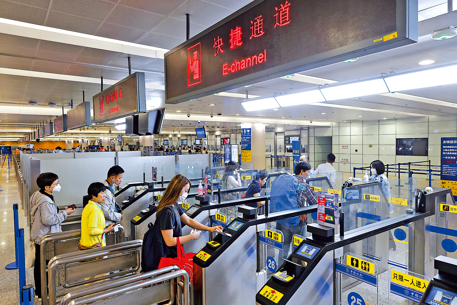 5月15日起,除了持用中國普通護照、往來港澳通行證、往來台灣通行證、港澳居民來往內地通行證、台灣居民來往大陸通行證(5年有效)、一年多次有效出入境通行證的中國公民外,持外國護照和外國人永久居留證、外國電子護照及6個月以上外國人居留許可的外國人也可經快捷通道通關。