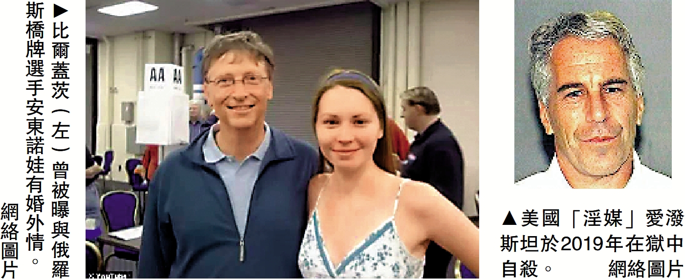 【大公報訊】據《華爾街日報》報道:《華爾街日報》引述知情人士消息,微軟創辦人比爾蓋茨曾與俄羅斯橋牌選手安東諾娃(Mila Antonova)有婚外情,而美國已故「淫媒」愛潑斯坦曾用該婚外情的消息,試圖勒索比爾蓋茨。