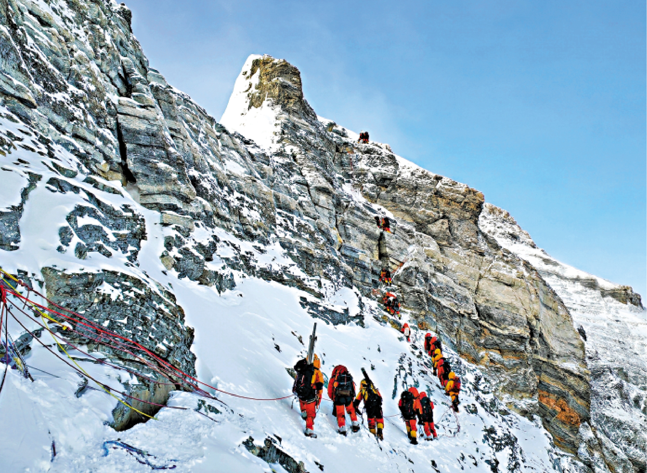 5月23日凌晨3時03分,2023「巔峰使命」珠峰科考隊一行13人,從海拔8300米的科考突擊營地出發開始衝頂,12時30分許,所有科考隊員順利攀登至海拔8848.86米的珠峰峰頂。這是中國珠峰科考繼2022年之後,再次突破8000米以上海拔高度。23日登頂之後,科考隊完成極高海拔氣象站技術升級、雪冰樣品採集、冰芯鑽取、岩石樣品採集等十多項科考任務。第二次青藏科考充分體現新時代「智能科考」的特點,充分採用衛星、高海拔自動科考機器人、互聯網、大數據處理與超級計算等新技術、新手段和新方法,探測「世界第三極」的氣候環境變化。/大公報記者劉凝哲