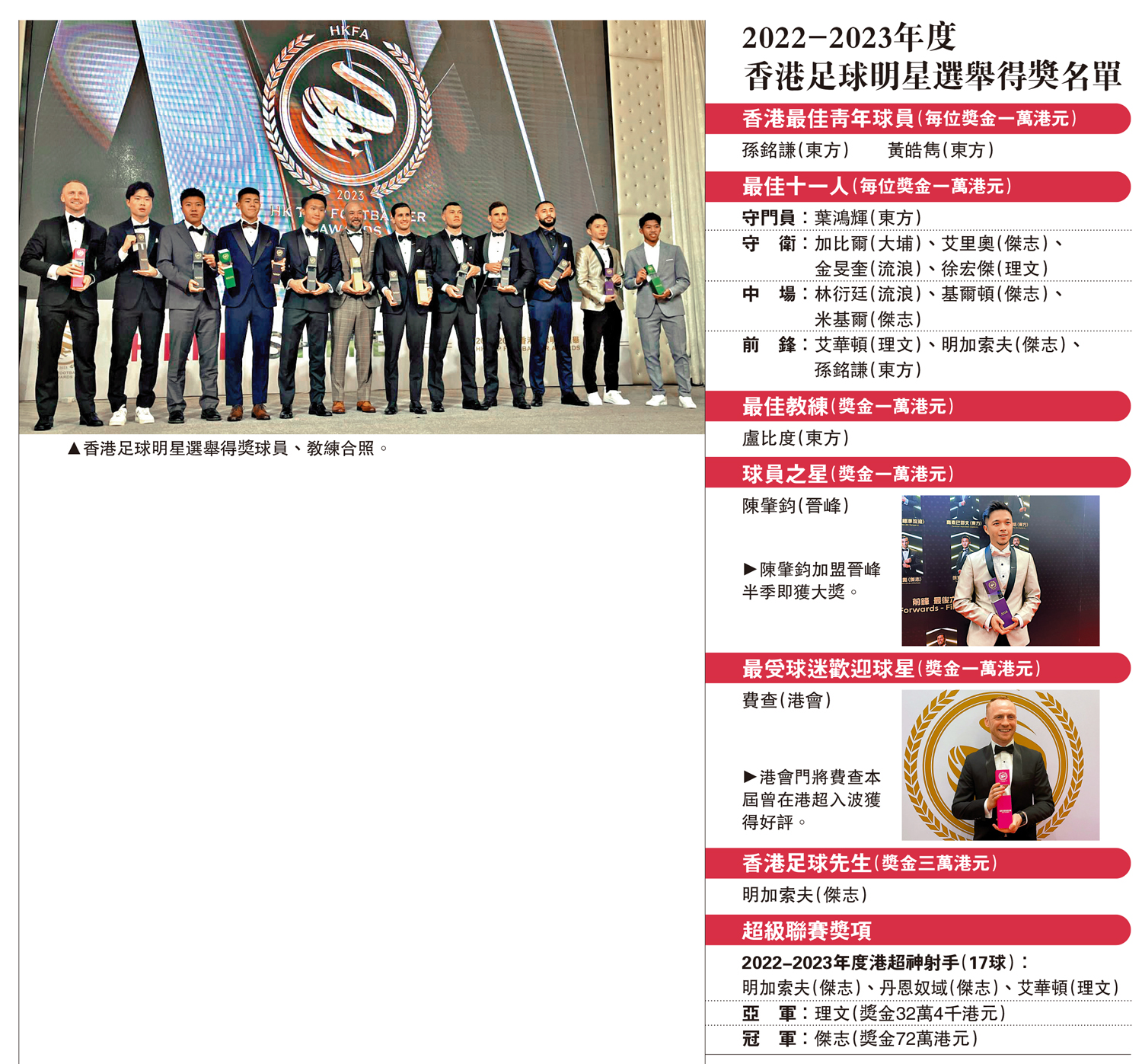 圖:2022-2023年度香港足球明星選舉得獎名單