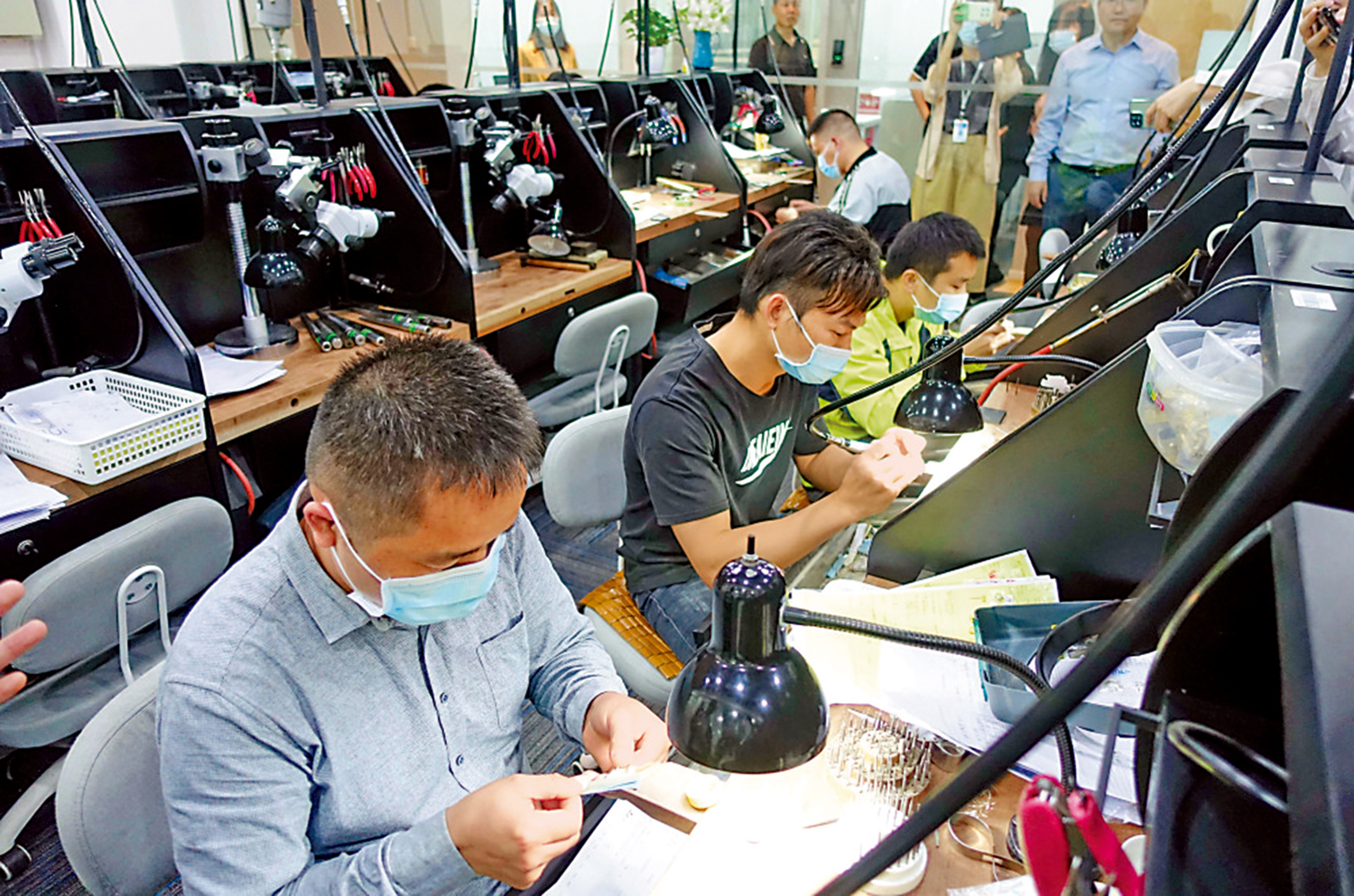 「番禺珠寶產業鏈非常完整,從原料採購、設計、切割、生產到銷售,所有環節都齊全。」港企廣州市鑫創一珠寶首飾有限公司人力資源總監李秀萍告訴記者,「我們經常到香港珠寶展參展,在番禺設計、生產,最後到香港走向世界市場,大灣區的珠寶產業有非常完善的分工配套。」誠好珠寶銷售總監張偉告訴記者,企業主營彩色寶石外觀切割,還建立了精切工廠。「我們將最先進的機械和熟練的人工切割結合,拋光設計上比國際的珠寶更精細。」