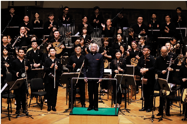 接着兩首作品俱為協奏曲式,由陳燮陽親自改編。首先是由樂團革胡首席董曉露以大提琴獨奏演出的《搖籃曲》,撥弦及笙等營造低沉的氛圍,讓大提琴歌唱一絲絲的樂句,頗有詩意。《天樂》原為嗩吶與西樂隊之間的中西文化碰撞。中樂版一九九一年由陳燮陽和嗩吶大師劉英在香港藝術節首演。這次請來劉英學生胡晨韻展示功架。其實陳、胡二人曾在莫斯科合演此曲,收錄在二○一九年《感恩母校》CD(雨果唱片編號HRP7358-2)。那是陳燮陽在朱老去世後翌年代他還了未竟夙願。朋輩間的情義,感人至深。