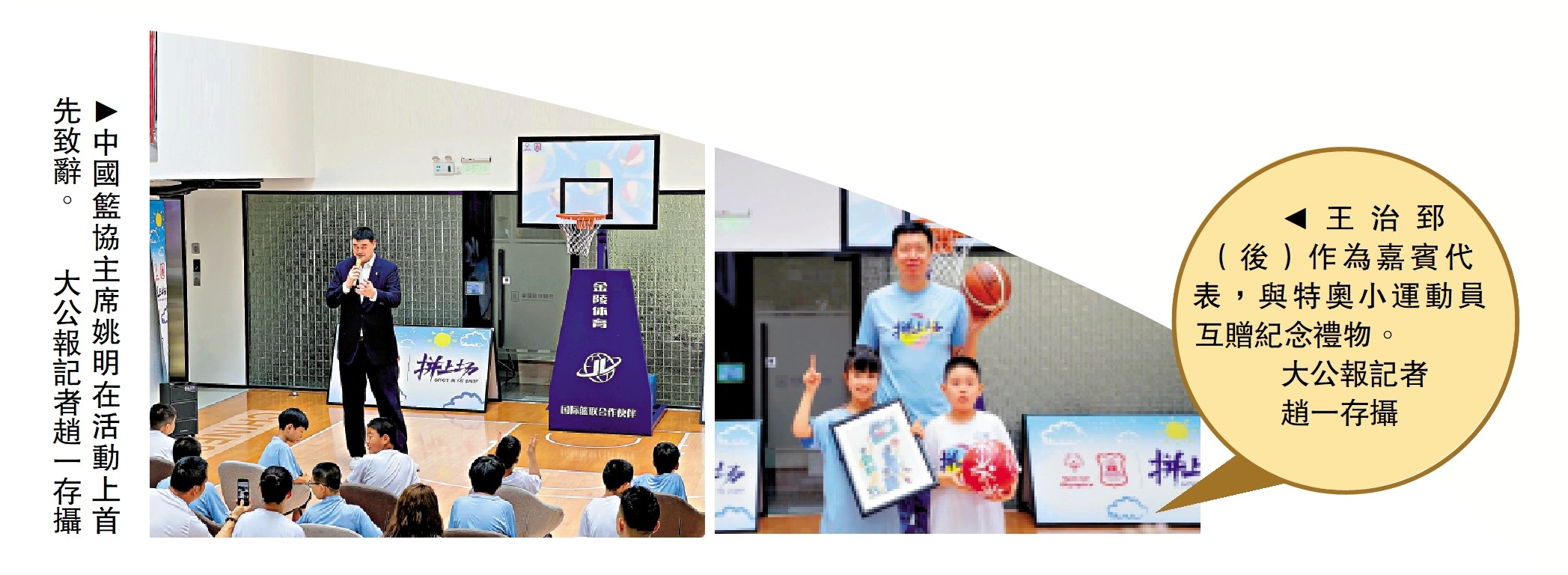 【大公報訊】記者趙一存、任芳頡北京報道:為迎接「六一」國際兒童節,中國籃球協會5月31日與國際特殊奧林匹克聯合舉辦「拚上場」主題兒童節活動,王治郅、宋曉雲、徐傑、翟曉川等多位中國籃球名宿、球員,與12名特奧運動員參加趣味籃球活動,共同進行籃球遊戲,分享籃球心得。中國籃協主席姚明首先致辭,為本次活動帶來助力。他表示,「非常歡迎各位小朋友們來到中國籃協,希望大家能夠更多了解籃球。」