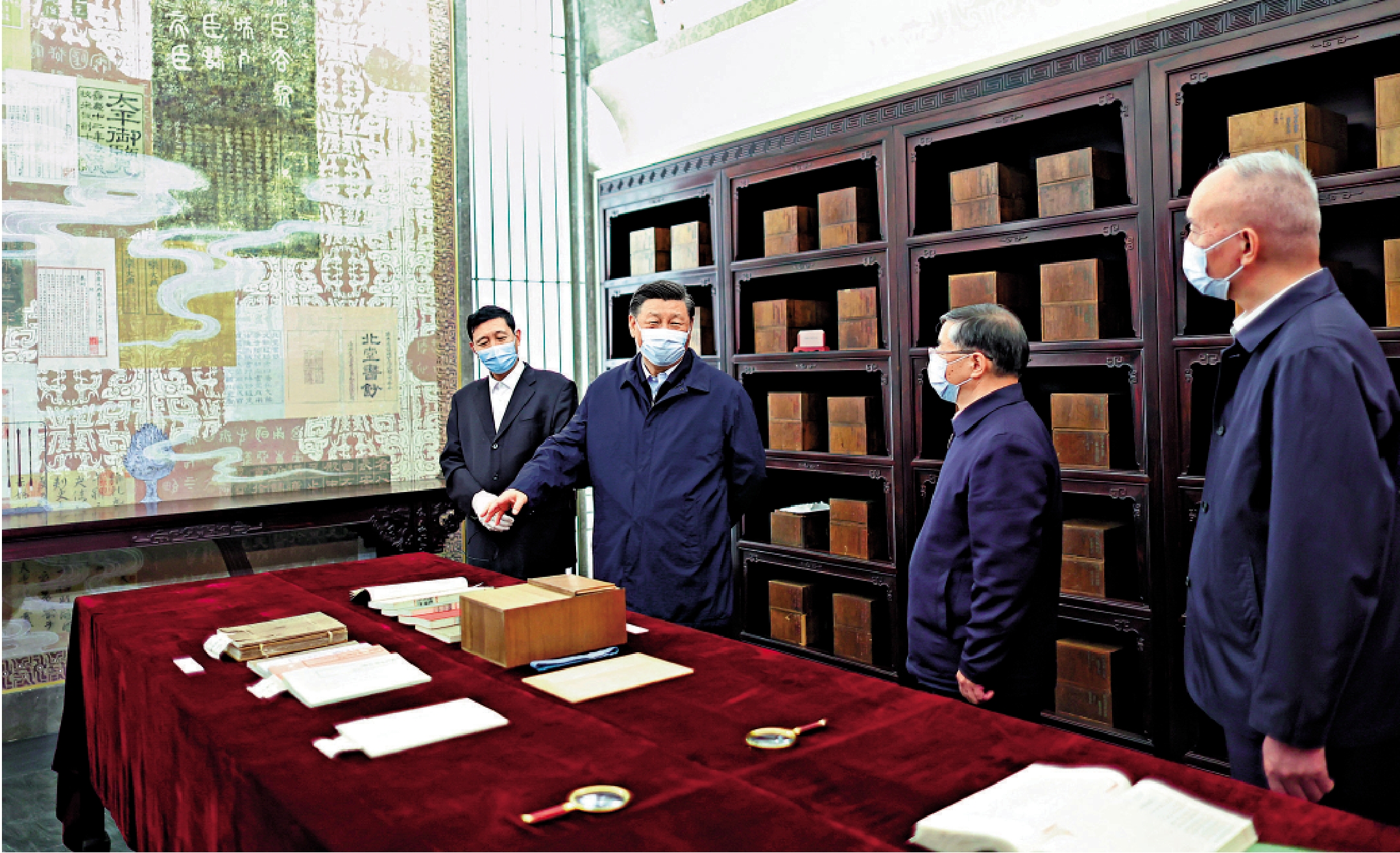 1日下午,習近平乘車來到位於北京市昌平區燕山腳下的中國國家版本館中央總館。2日下午,習近平乘車來到中國歷史研究院。中國歷史研究院的主要職責是統籌指導全國歷史研究工作,整合資源和力量制定新時代中國歷史研究規劃,組織實施國家史學重大學術項目。習近平走進院內的中國考古博物館,先後參觀文明起源和宅茲中國專題展,了解新石器時代和夏商周時期重大考古發現,並不時詢問相關研究工作進展。隨後,習近平察看了中國歷史研究院部分館藏珍貴古籍和文獻檔案,並在中國歷史研究院科研工作成果展前聽取了有關情況匯報。
