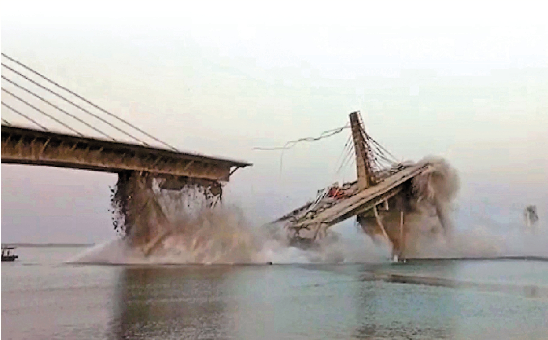 印度東北部比哈爾邦的阿格瓦尼—蘇丹甘吉大橋4日突然崩塌。現場視頻顯示,大橋先是橋樑崩裂,一小段先墜入水中,然後另一邊較長的橋身亦很快支撐不住,整段下沉到水中,在不到10秒鐘的時間內,整個橋面像奶粉一樣「溶解」,完全消失在河水中。《印度時報》報道指出,這個橫跨印度恆河、規劃有四條線路的大橋,其主要坍塌的原因是大橋的1號、9號、10號、11號等橋樑崩垮,同步牽引着上面的橋面跟着倒塌。這起事故暫並未傳出人員傷亡。