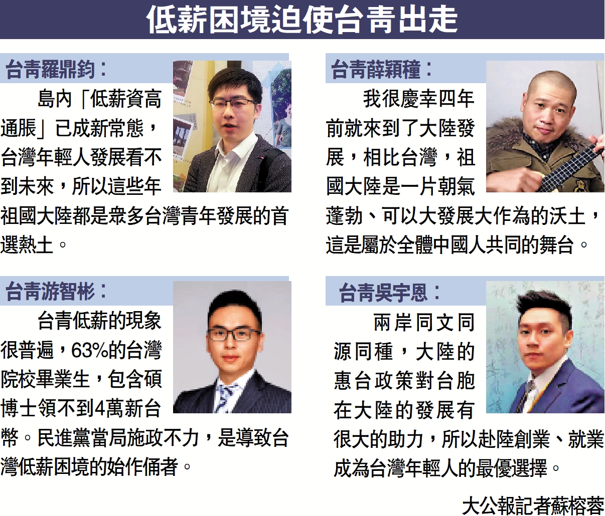 台青低薪的現象很普遍,63%的台灣院校畢業生,包含碩博士領不到4萬新台幣。民進黨當局施政不力,是導致台灣低薪困境的始作俑者。