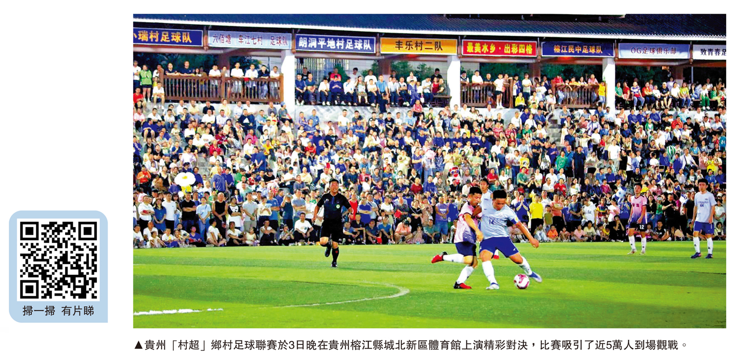 5月13日,參照「英超」「中超」等命名規則,後被簡稱「村超」的榕江(三寶侗寨)和美鄉村足球超級聯賽,在榕江縣城城北新區體育館開幕。6月3日,原中央電視台體育播音員和解說員韓喬生空降「村超」現場,解說球賽。與他搭檔的,就是嗓音粗大、但略顯沙啞的當地人楊兵。本場「村超」比賽吸引了近5萬名觀眾到場觀看。面對始料未及的火爆場面,楊兵給大公報記者獨家「解說」,草根性、民間性和快樂第一的原則,正是貴州之前的「村BA」、現在的「村超」的活力、動力和魅力所在。前英格蘭國足隊長奧雲在社交媒體發視頻點讚,恭喜貴州村超取得成功,希望大家在比賽中取得好成績,他堅信貴州村超會越來越精彩。\大公報記者周亞明貴陽報道