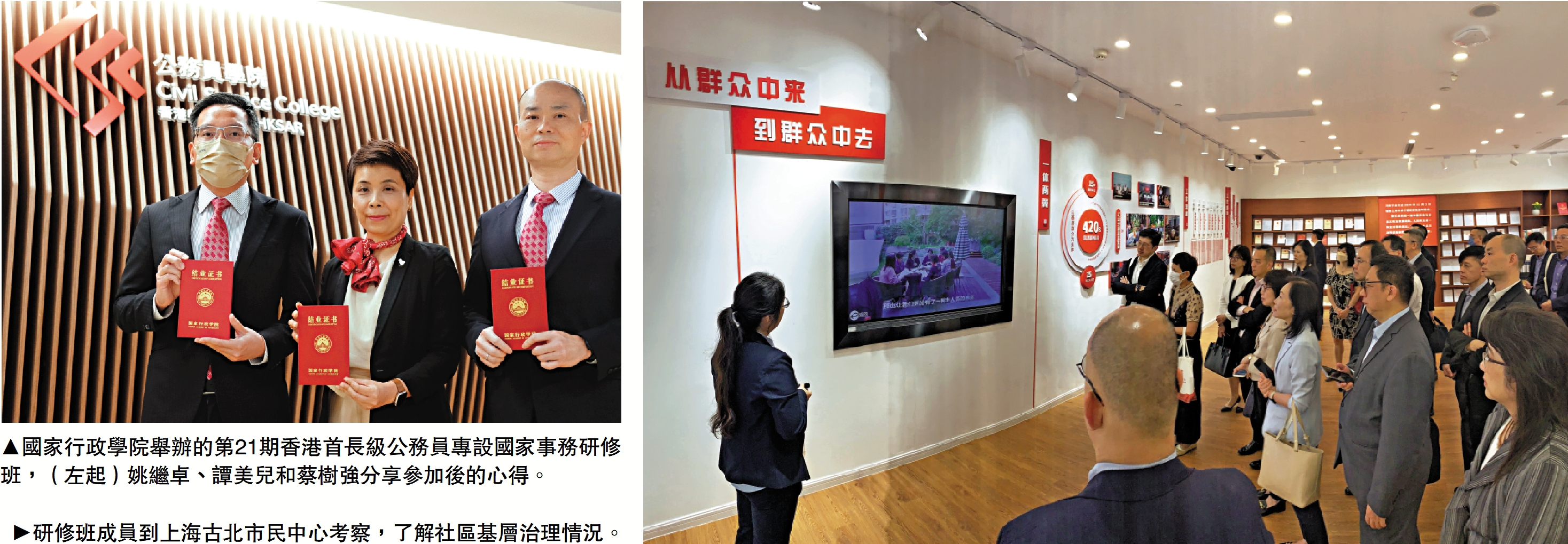 蔡樹強續說,而今次研習課程內容細緻周密,在國家行政學院學習了兩日半的理論課,所有的專家老師對於「一國兩制」方針、國家憲法、中國式現代化等理論都有充分的理解。課程增強了公務員對國家政策和國家任務的準確把握,更有系統領會「一國兩制」方針,令公務員能夠善用理論,分析及解決香港面臨的困難,有助制定政策。