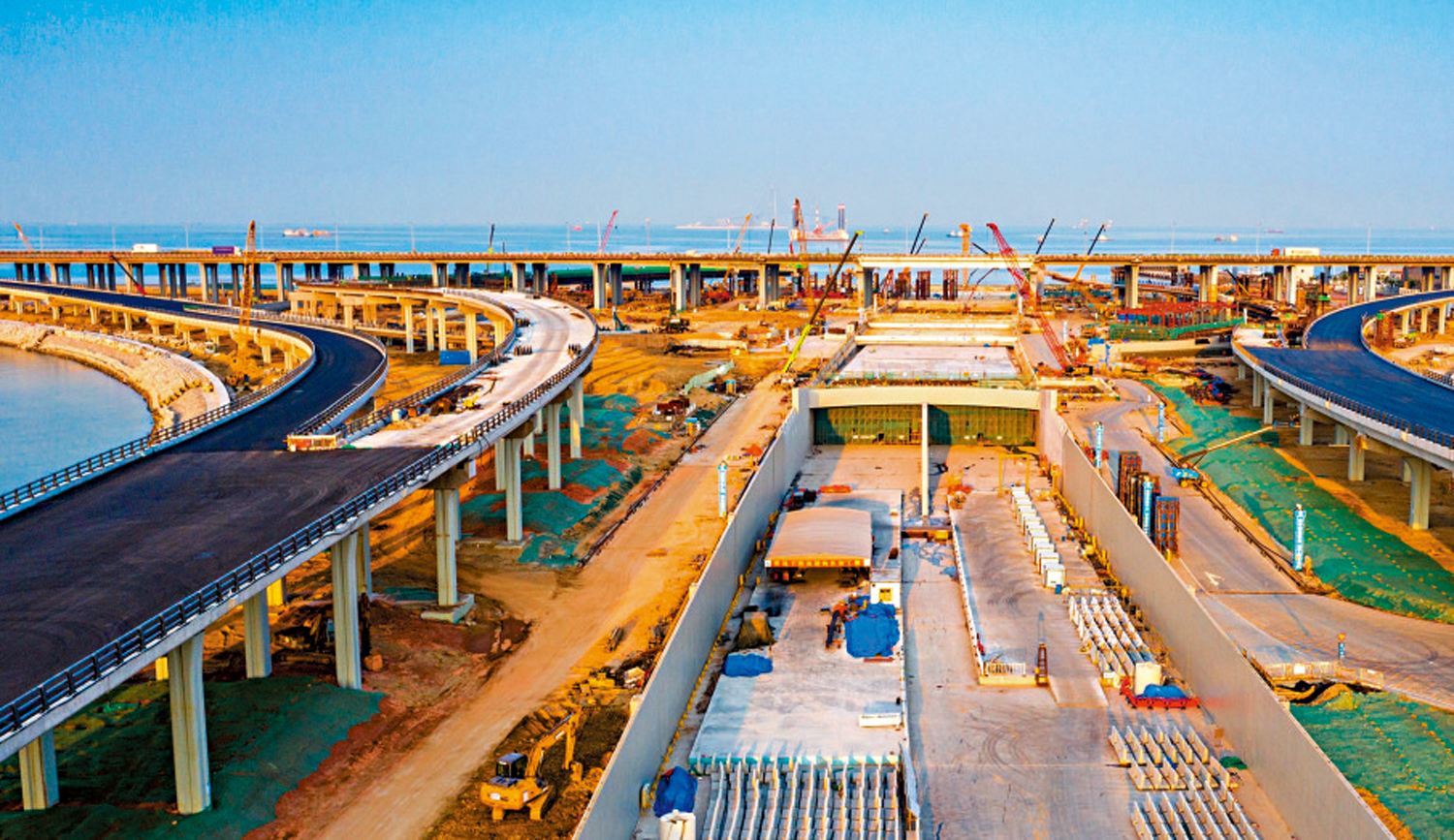 【大公報訊】記者方俊明中山報道:灣區「超級工程」深中通道建設又獲新突破。廣東交通集團20日透露,深中通道東人工島主體結構施工20日全面完成,同時也標誌着中國首個高速公路水下互通立交主體正式成形。深中通道計劃明年建成通車後,經東人工島可從東南西北4個方向通往粵港澳大灣區不同城市,其中南往深圳前海合作區、香港方向,發揮該通道項目作為「大灣區核心交通樞紐」的作用,推動加速形成大灣區主要城市間「一小時生活圈」。