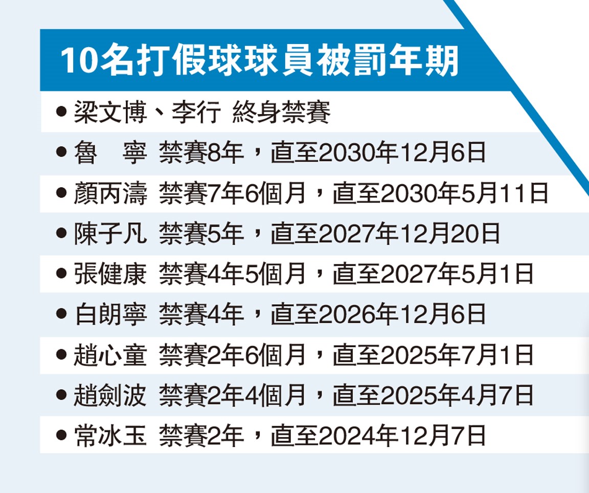 【大公報訊】據新華社報道:中國台球協會21日發布對違反世桌聯行為準則中國籍球員的處罰決定,對10名被指控打假球的球員作出處罰,其中梁文博、李行兩人被終身禁賽。