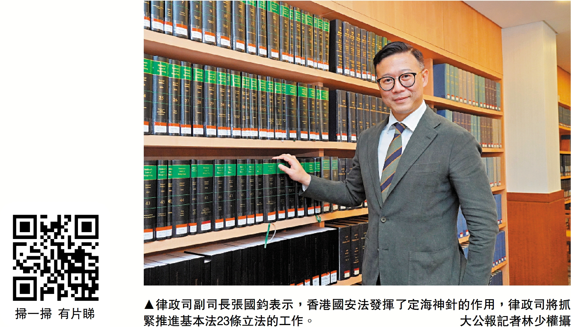 新一屆特區政府新設副司長職位,以協助處理三司司長轄下的政策事宜。律政司副司長張國鈞接受《大公報》訪問時表示,香港國安法實施三年以來,止暴制亂,發揮了定海神針的作用,律政司將抓緊推進基本法23條立法的相關工作。