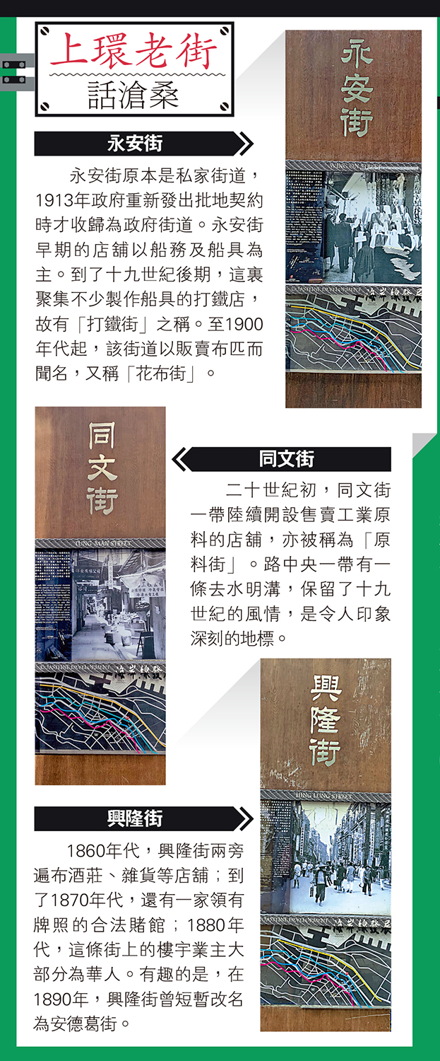 二十世紀初,同文街一帶陸續開設售賣工業原料的店舖,亦被稱為「原料街」。路中央一帶有一條去水明溝,保留了十九世紀的風情,是令人印象深刻的地標。